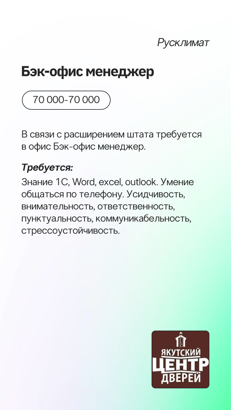 Новые вакансии